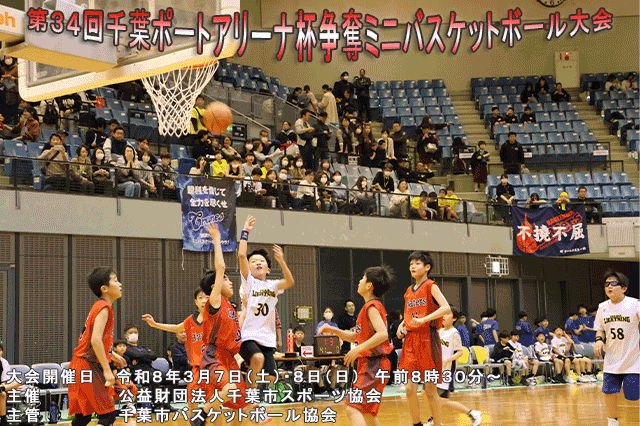 令和8年3月7日(土)・8日(日)に、千葉ポートアリーナで、『第34回千葉ポートアリーナ杯争奪ミニバスケットボール大会』を開催します。