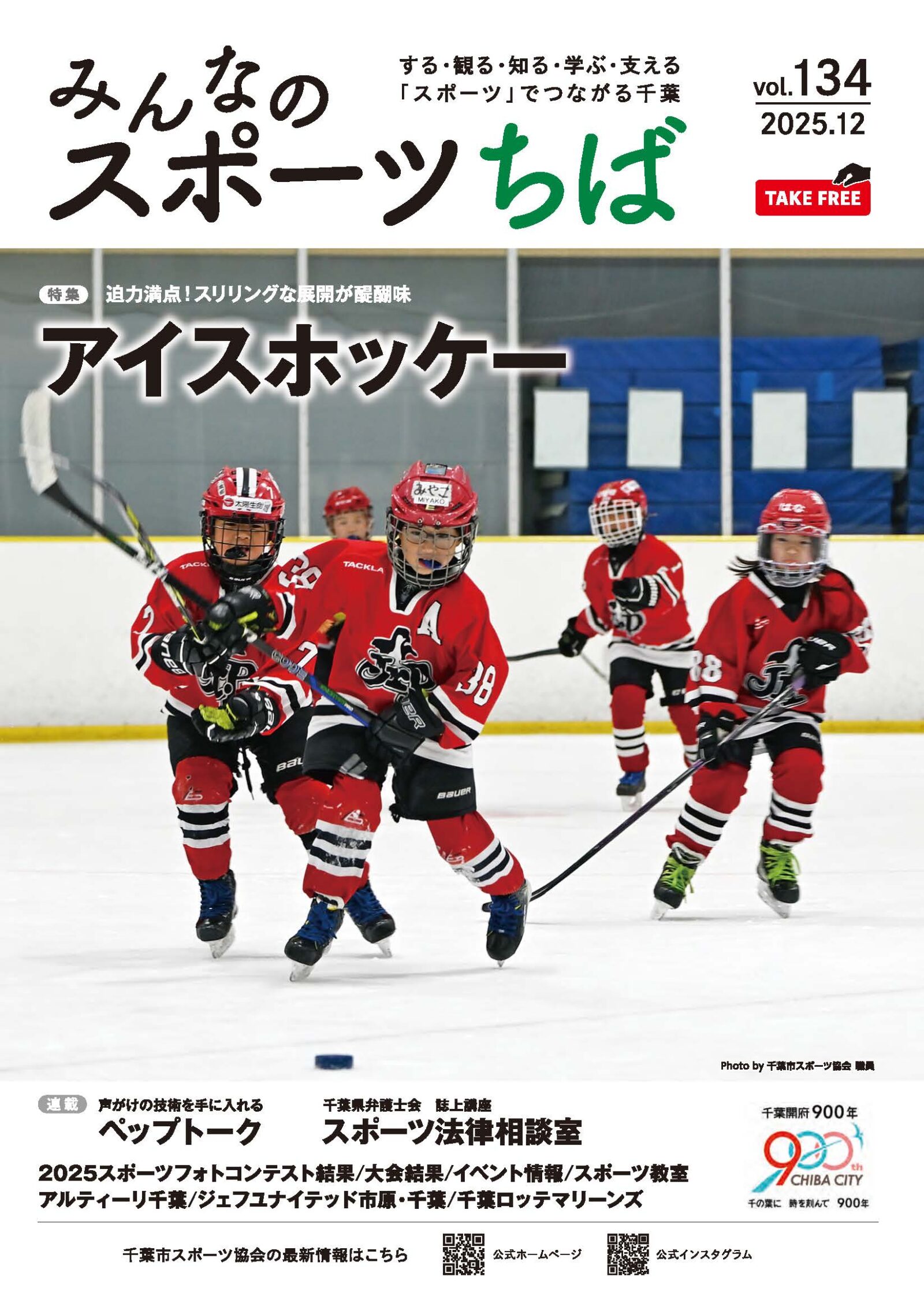 スポーツ情報誌「みんなのスポーツちば」Vol.134(2025.12.1発行) 2025年12月1日 officeman_admin カテゴリ: みんなのスポーツちば, お知らせ 特集 迫力満点!スリリングな展開が醍醐味アイスホッケー 連載 声がけの技術を手に入れるペップトーク 千葉県弁護士会 誌上講座スポーツ法律相談室 2025スポーツフォトコンテスト結果 大会結果 イベント情報 スポーツ教室 アルティーリ千葉 ジェフユナイテッド市原・千葉 千葉ロッテマリーンズ みんなのスポーツちば Vol.134ダウンロード